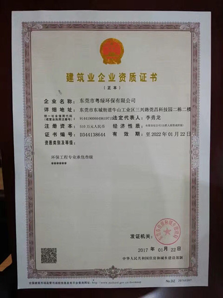 公司動態(tài) 熱烈慶?;浘G環(huán)保取得環(huán)保工程專業(yè)施工資質